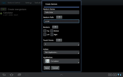 gestos personalizados – criar seus próprios gestos para iniciar qualquer ação de atalho do aplicativo, ou personalizado