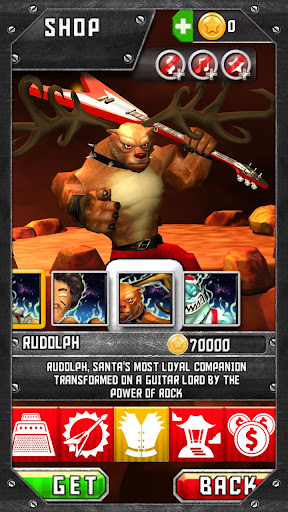 - Jogar com quatro personagens diferentes: Santa Rockstar, Genny O Guitar Legend Gingerbread, Rudolph o Senhor Rocha e Santa Jaws