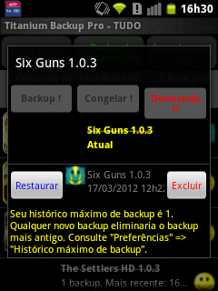 Apos selecionar o aplicativo ou jogo ou qualquer outro tipo de arquivo, neste caso irei utilizar o jogo Six Guns, clique no icone e selecione a opçao (Restaurar)...