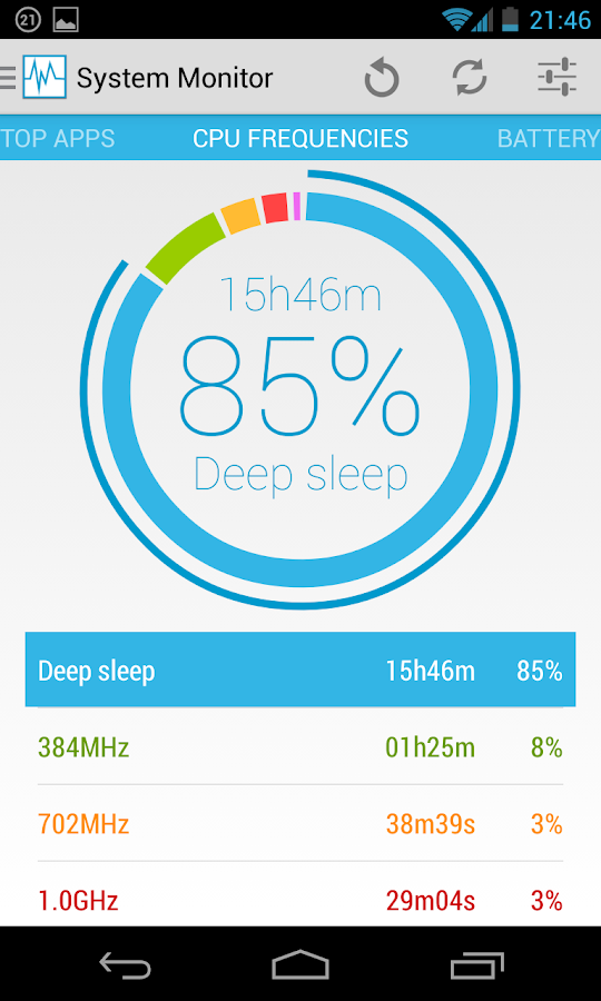 A aplicação mais bonita e versátil do Android! Fornece estatísticas em tempo real da quantidade de processamento que está a ser levado a cabo pelo processador e outras importantes informações do sistema em forma de gráficos com aspecto futurístico e texto.