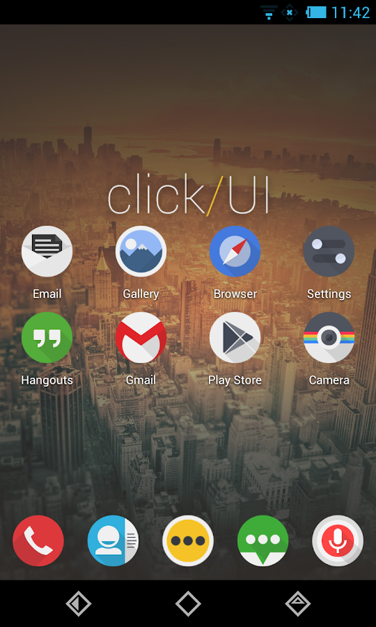 Click UI. é tema para o Nova Launcher, Apex Launcher, Go Ex Launcher, Action Launcher Pro, e alguns outros.