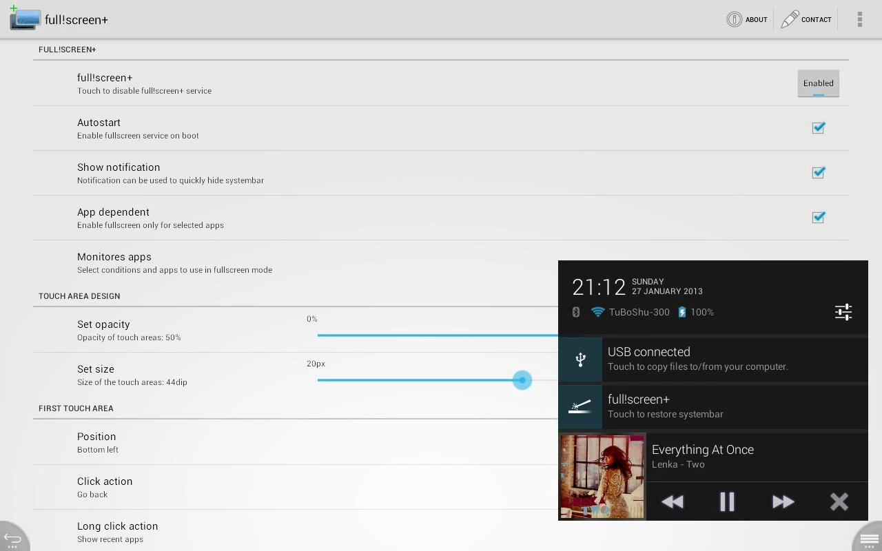 Apenas definir os aplicativos que você deseja usar no modo de tela cheia e tela cheia! + Cuida do resto. Ele irá automaticamente desativar a barra inferior para esses aplicativos.