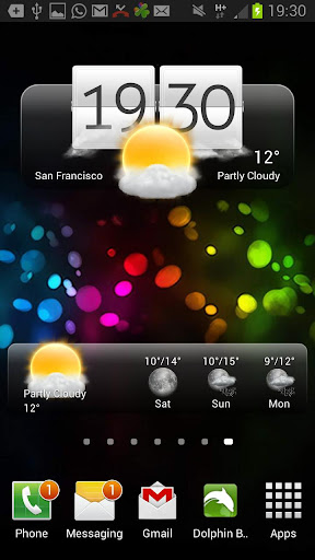 - 1 Widget grande de relógio, clima e previsão do tempo.